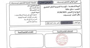 وزارة العمل والتشغيل والضمان الاجتماعي الوكالة الوطنية للتشغيل الفرع الولائي للتشغيل سعيدة الملحقة المحلية للتشغيل الحساسنة ads عرض عمل المهنة المستخدمة: تعاونية الحبوب والبقول الجافة سعيدة تاريخ التسجيل: 2025/05/25 رقم العرض: عدد المناصب: 01 المهنة المطلوبة: ليسانس في بيولوجيا النباتية المؤهلات المطلوبة: خبرة 03 …