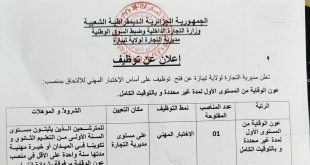 أكمل القراءة »إعلان عن توظيف بمديرية التجارة لولاية تيبازة