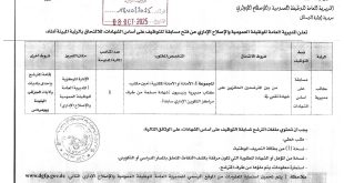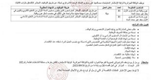 المديرية العامة للوظيفة العمومية والإصلاح الإداري ads تعْلن المديرية العامة للوظيفة العمومية والإصلاح الإداري عن فتح مسابقة للتوظيف على أساس الشهادات للالتحاق بالرتبة المبينة أدناه: الرتبةنمط التوظيفشروط الالتحاقالتخصص المطلوبعدد المناصب المالية المفتوحةشروط التعيينشروط أخرىكاتب مديريةمسابقة على أساس الشهاداتمن بين المترشحين الحائزين على شهادة تقني …