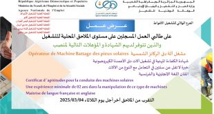 الجمهورية الجزائرية الديمقراطية الشعبية وزارة العمل والتشغيل والضمان الاجتماعي الوكالة الوطنية للتشغيل ads عرض عمل على طالبي العمل المسجلين على مستوى الملاحق المحلية للتشغيل والذين تتوفر لديهم الشهادة والمؤهلات التالية لمنصب: مشغل آلة دق الركائز الشمسية شهادة الكفاءة المهنية في تشغيل آلات دق الأعمدة …