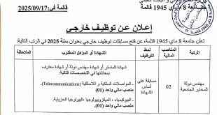 أكمل القراءة »إعـلان عن توظيف خـارجي بجامعة 8 ماي 1945 قالمة
