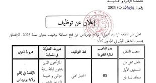 أكمل القراءة »إعلان عن توظيف بدار الثقافة “رشيد ميهوبي” ولاية بومرداس