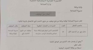 أكمل القراءة »إعلان عن توظيف بمديرية الصناعة لولاية ورقلة