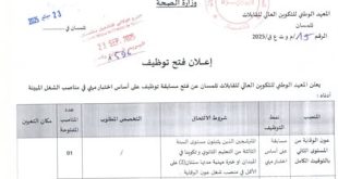 وزارة الصحة المعهد الوطني للتكوين العالي للقابلات ولاية تلمسان ads تلمسان في 23 سبتمبر 2025 إعلان فتح توظيف يعلن المعهد الوطني للتكوين العالي للقابلات تلمسان عن فتح مسابقة توظيف على أساس اختياري في مناصب الشغل المبينة أدناه: و ينبغي أن يشتمل ملف التوظيف على …