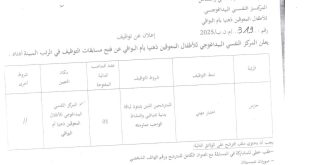أكمل القراءة »إعلان عن توظيف بالمركز النفسي البيداغوجي للأطفال المعوقين ذهنيا أم البواقي