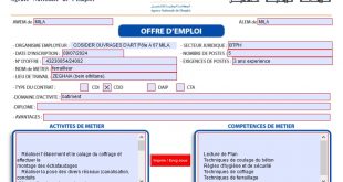 الجمهورية الجزائرية الديمقراطية الشعبية وزارة العمل والتشغيل والضمان الاجتماعي الوكالة الوطنية للتشغيل ads إعلان عن عرض عمل تعلن مؤسسة اقتصادية وطنية وبهدف تغطية حاجاتها في الأخصائيين التالي: قوالب متخصص في قالب نفق معدني (COFFRAGE METALLIQUE) الخبرة في المجال. ملاحظة: العمل يكون في الفترة الليلية. …