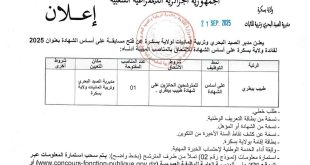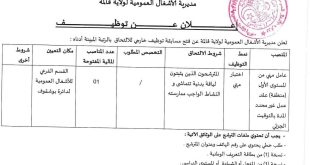 وزارة العمل والتشغيل والضمان الإجتماعي المديرية العامة للعمل المفتشية الجهوية للعمل ورقلة ads إعلان توظيف تعلن المفتشية الجهوية للعمل بورقلة عن فتح مسابقة على أساس الشهادة وعلى أساس الإختبار المهني لفائدة المفتشية الولائية للعمل بالوادي كما هو مبين في الصور أدناه: إعلان عن مسابقة …