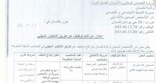 وزارة التضامن الوطني و الأسرة وقضايا المرأة مديرية النشاط الإجتماعي و التضامن دار الأشخاص المسنين بولاية تلمسان ads اعلان عن فتح توظيف عن طريق الإختبار المهني يعلن مدير دار الأشخاص المسنين بولاية تلمسان عن فتح توظيف عن طريق الإختبار المهني في المناصب المالية المفتوحة …