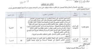 وزارة الــــري مديرية الري لولاية برج بوعريريج ads إعلان عن توظيف تعلن مديرية الري لولاية برج بوعريريج عن فتح مسابقة توظيف في مناصب الشغل التالية: إعلان عن مسابقة توظيف بالمركز الوطني للبحث المطبق في هندسة مقاومة الزلازل إعلان عن مسابقة توظيف بمديرية التربية إعلان …