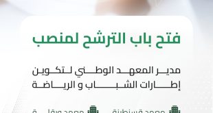 إعـــــلان عن الترشـــح: ads في إطار التوجه الإستراتيجي لوزارة الشباب، وتحقيقاً لرؤيتها وديناميكيتها الجديدة الرامية إلى بناء منظومة شبابية متكاملة، ترتكز على مقاربة عصرية تهدف إلى تأهيل العنصر البشري بالدرجة الأولى، تُعلِن الوزارة عن فتح باب الترشح لشغل المناصب التالية: مدير المعهد الوطني لتكوين …
