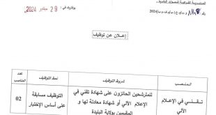 أكمل القراءة »إعلان عن توظيف خارجي على أساس الشهادات بالمؤسسة العمومية الاستشفائية الإخوة مغلاوي ميلة