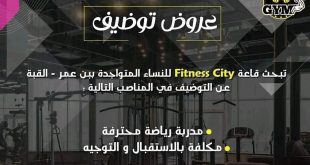 عروض توظيف ads تبحث قاعة Fitness City للنساء المتواجدة ببن عمر – القبة عن توظيف في المناصب التالية: مدربة رياضة محترفة مكلفة بالاستقبال والتوجيه ترسل السيرة الذاتية إلى البريد الإلكتروني التالي: [email protected] يشترط في المرشحة للمنصب أن تكون قريبة من مقر القاعة Fitness City …
