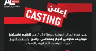 إعلان كاستينج ads تعلن قناة الجزائر الدولية AL24 News عن تنظيم كاستينج لتعيين مذيعي أخبار ومقدمي برامج باللغات الأربع: العربية، الفرنسية، الإنجليزية، والإسبانية. نبحث عن: مذيعي أخبار ومقدمي برامج الشروط: يجب أن يكون المتقدم ذو صوت جذاب ومظهر محترم. إجادة اللغة العربية بشكل ممتاز …