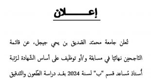 إعلان ads تعلن جامعة محمد الصديق بن يحيى جيجل، عن قائمة الناجحين نهائياً في مسابقة و/أو توظيف على أساس الشهادة لرتبة أستاذ مساعد قسم “ب” لسنة 2024 بعد دراسة الطعون والتدقيق مع مصالح الوظيفة العمومية. إعلان عن مسابقة توظيف بالمركز الوطني للبحث المطبق في …