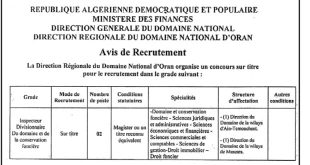 الجمهورية الجزائرية الديمقراطية الشعبية الوكالة الوطنية للتشغيل الفرع الولائي للتشغيل بتوقرت المديرية العامة للوظيفة العمومية والاصلاح الاداري لولاية توقرت اعلان عن توظيف ads تعلن المديرية العامة للوظيفة العمومية والإصلاح الإداري عن فتح مسابقة للتوظيف على أساس الشهادات للالتحاق بالرتبة المبينة أدناه: إعلان عن مسابقات …