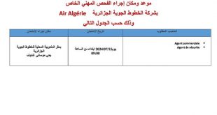 أكمل القراءة »موعد ومكان إجراء الفحص المهني الخاص الخاص بشركة الخطوط الجوية الجزائرية Air Algérie
