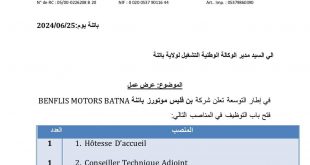 أكمل القراءة »عرض عمل في شركة SARL BENFLIS MOTORS