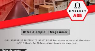 اعلان توظيف شركة بوقصة للكهرباء الصناعية فرع العاصمة ads شركة بوقصة للكهرباء الصناعية فرع العاصمةالمتخصصة في توزيع المعدات الكهربائية للعلامة التجارية العالمية ABBتفتح باب الانضمام الي فريقها في المنصب التالي: عون مخزن Magasinier المهام: تجميع المنتجات المخصصة لطلب معين. التحقق من مطابقة المنتجات المستلمة …