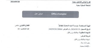 أكمل القراءة »اعلان توظيف بمؤسسة المياه المعدنية – EMS