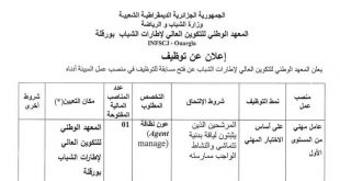 أكمل القراءة »إعلان عن توظيف بالمعهد الوطني للتكوين العالي لإطارات الشباب