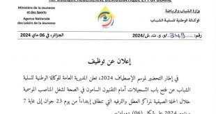 أكمل القراءة »إعلان عن توظيف بالمديرية العامة للوكالة الوطنية لتسلية الشباب