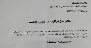 أكمل القراءة »إعلان عن توظيف عن طريق النقل بمعهد التكوين شبه الطبي بالشطية