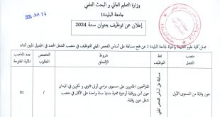 أكمل القراءة »إعلان عن توظيف في جامعة محمد البشير الإبراهيمي برج بوعريريج