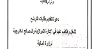 الجمهورية الجزائرية الديمقراطية الشعبية وزارة المالية دعوة لتقديم طلبات الترشح لشغل وظائف عليا في الإدارة المركزية والمصالح الخارجية ads لوزارة المالية في إطار استراتيجيتها الرامية إلى تثمين الكفاءات الوطنية وتعزيز القدرات القيادية والإدارية لهياكلها، تفتح وزارة المالية باب الترشح لشغل وظائف عليا على مستوى …