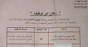 أكمل القراءة »اعلان عن توظيف في ابتدئية ضوية النعام ببلدية الشارف الجلفة