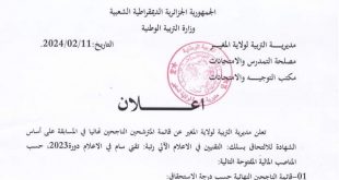 أكمل القراءة »قائمة المترشحين الناجحين نهائيا في مسابقة مديريــة التربية لولاية المغير