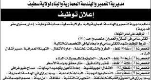 اعلان عن توظيف مديرية التعمير والهندسة المعمارية والبناء لولاية سطيف ads تعلن مديرية التعمير والهندسة المعمارية والبناء لولاية سطيف عن فتح مسابقة توظيف في الرتب المبينة ادناه مهندس دولة في السكن والعمران عدد المناصب 01 منصب مط التوظيف: على اساس الشهادة تقني سام في …