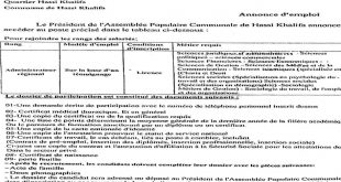 اعلان عن توظيف بلدية حاسي خليفة ولاية الوادي ads يعلن رئيس المجلس الشعبي البلدي لبلدية حاسي خليفة ولاية الوادي عن فتح مسابقة توظيف في الرتب المبينة ادناه متصرف إقليمي عدد المناصب 01 منصب مط التوظيف: على اساس الشهادة ملف المسابقة على أساس الشهادة طلب …
