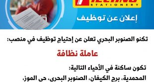 إعلان عن توظيف ads تبحث مؤسسة تكنو الصنوبر البحري عن منظفة سواءا توقيت كامل أو جزئي (toute la journée ou demi journée) و تكون ساكنة في الأحياء التالية: المحمدية، برج الكيفان، الصنوبر البحري، حي الموز، باب الزوار، الحراش، حسين داي. لكل من يهمها الأمر …