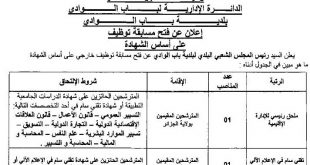 اعلان عن توظيف بلدية باب الواد بالجزائر العاصمة ads يعلن رئيس المجلس الشعبي البلدي لبلدية باب الواد عن فتح مسابقة توظيف في الرتب المبينة ادناه ملحق رئيسي للإدارة الإقليمية عدد المناصب 01 منصب نمط التوظيف: على اساس الشهادة تقني سام في الإعلام الآلي للإدارة …