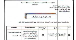 أكمل القراءة »اعلان عن توظيف بالمديرية الجهوية لأملاك الدولة بولاية الشلف
