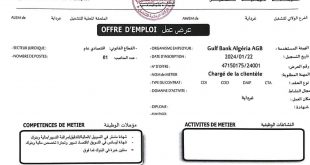الفرع الولائي للتشغيل غرداية الملحقة المحلية للتشغيل غرداية عرض عمل بنك الخليج AGB BANQUE ads تعلن الملحقة المحلية للتشغيل غرداية عن عرض عمل ببنك الخليج AGB BANQUE كما هو موضح ادناه الهيئة المستخدمة: بنك الخليج AGB BANQUE المناصب المطلوبة: charge de la clientele عدد …