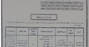 الفرع الولائي للتشغيل ورقلة عرض عمل الشركة الوطنية للقنوات ENAC ads يعلن الفرع الولائي للتشغيل ورقلة عن عرض عمل بالشركة الوطنية للقنوات ENAC كما هو موضح ادناه الهيئة المستخدمة : الشركة الوطنية للقنوات ENAC المناصب المطلوبة موضحين في الصور المرفقة عدد المناصب: 50 مكان …