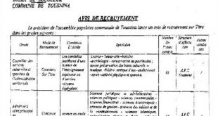 أكمل القراءة »اعلان عن توظيف ببلدية توسنينة ولاية تيارت