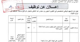 أكمل القراءة »اعلان عن توظيف بالمعهد الوطني المتخصص في التكوين المهني بن سعيدي عبد العاطي ولاية البيض
