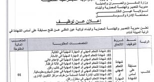 اعلان عن توظيف المعهد الوطني المتخصص في التكوين المهني بيسر ولاية بومرداس ads يعلن المعهد الوطني المتخصص في التكوين المهني بيسر ولاية بومرداس عن فتح مسابقة توظيف في الرتب المبينة ادناه استاذ متخصص في التكوين والتعليم المهنيين من الرتبة الثانية عدد المناصب 04 منصب …