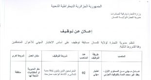أكمل القراءة »اعلان عن توظيف بمديرية التجارة