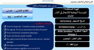 أكمل القراءة »عرض عمل خاص بالمؤسسة الوطنية للأشغال في الأبار ENTP