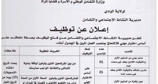 أكمل القراءة »اعلان عن توظيف بمديرية النشاط الاجتماعي والتضامن