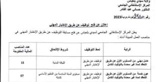 أكمل القراءة »اعلان عن توظيف بالمركز الاستشفائي الجامعي لولاية سيدي بلعباس (28 منصب)