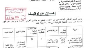 أكمل القراءة »اعلان عن توظيف بالمعهد الوطني المتخصص في التكوين المهني جنادي العربي بومرداس