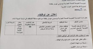 اعلان عن توظيف مديرية المجاهدين لولاية الطارف ads تعلن مديرية المجاهدين لولاية الطارف عن فتح مسابقة توظيف في الرتب المبينة ادناه حارس بالتوقيت الكامل عدد المناصب 01 منصب نمط التوظيف: مسابقة على اساس الاختبار المهني ملف مسابقة على اساس الاختبار : طلب خطي يتم …