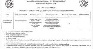 أكمل القراءة »اعلان عن توظيف بجامعة قاصدي مرباح ورقلة