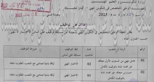 أكمل القراءة »اعلان عن توظيف بالمعهد الوطني المتخصص في التكوين المهني سعيدة