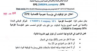 أكمل القراءة »إعلان عن توظيف بالمؤسسة الفرعية SPA Cnrdpa Company