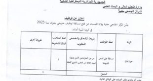 أكمل القراءة »اعلان عن توظيف بالمركز الجامعي مغنية ولاية تلمسان